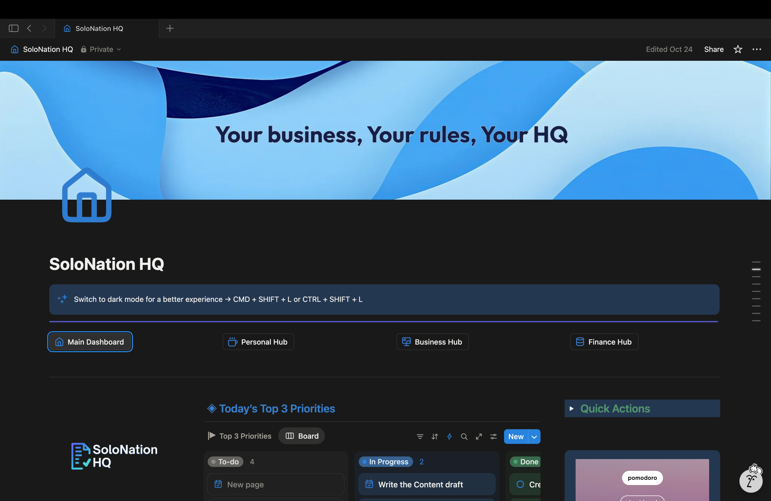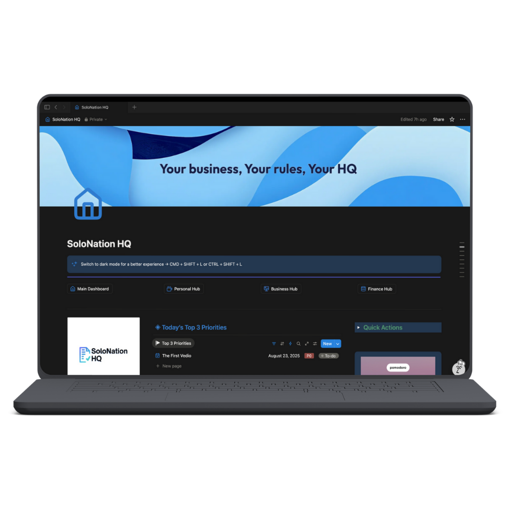 🚀 Solo Nation HQ — The Ultimate Notion Workspace for Solopreneurs